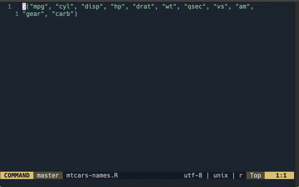 dput(names(mtcars))c("mpg", "cyl", "disp", "hp", "drat", "wt", "qsec", "vs", "am",