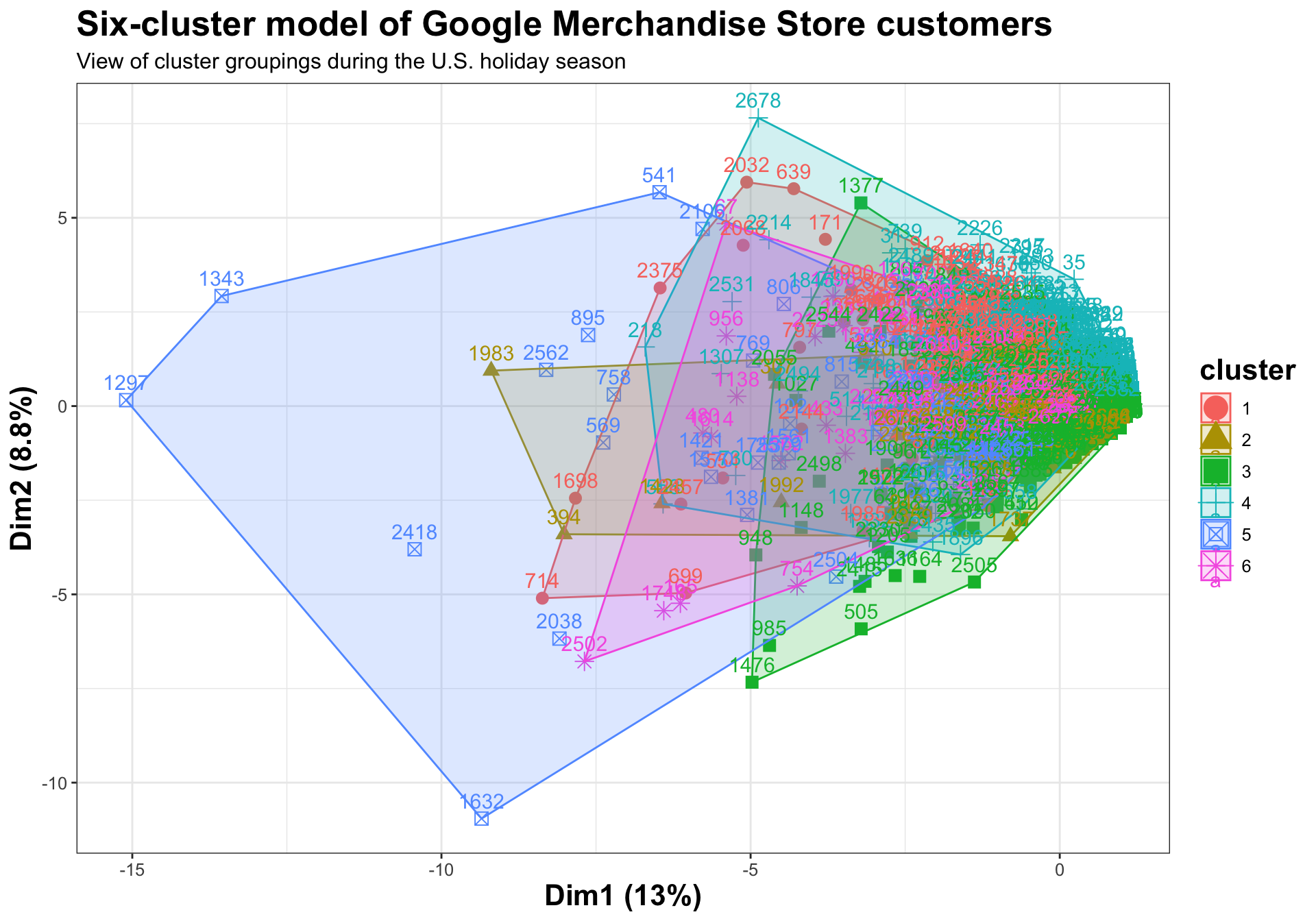 title = "Six-cluster model of Google Merchandise Store customers",