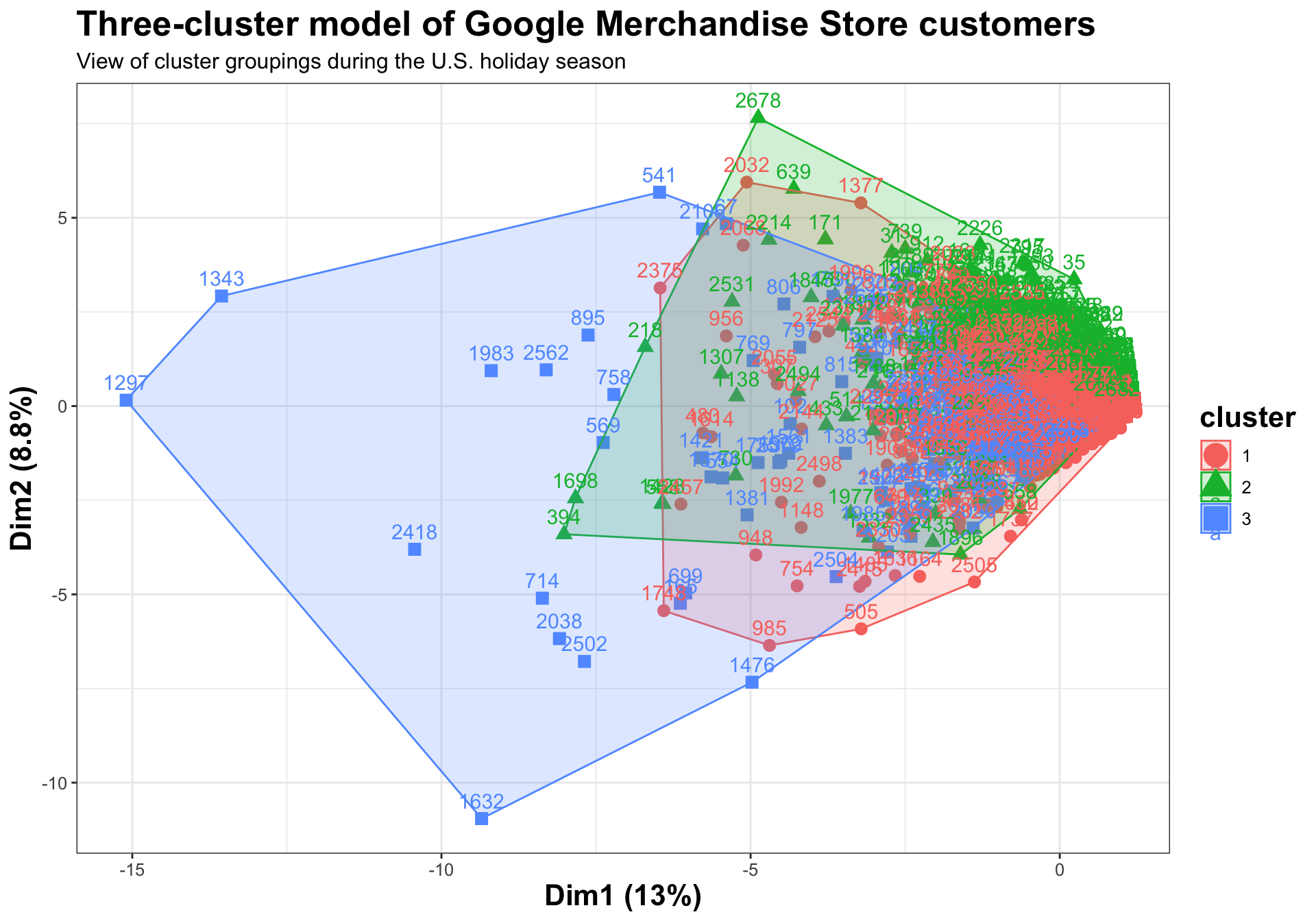 title = "Three-cluster model of Google Merchandise Store customers",